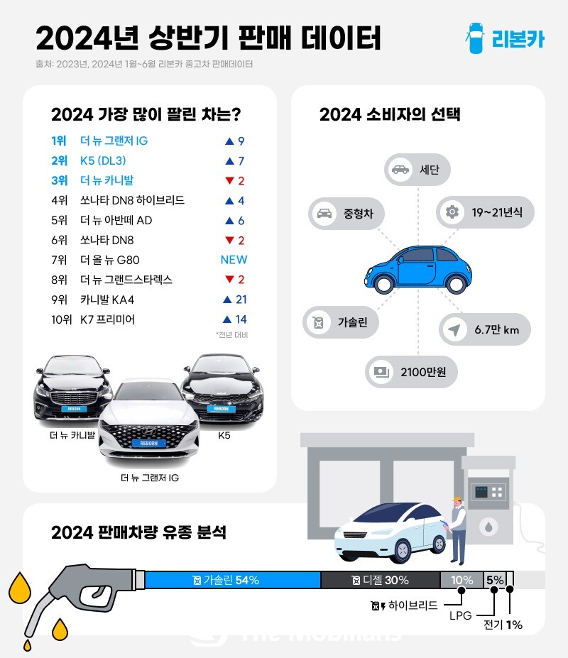 2024년 신차 구입 연료별 점유율에서 가솔린, 하이브리드, 전기차 순으로 나타났습니다. 이는 현재 소비자들이 하이브리드를 전기차보다 더 실용적인 대안으로 보고 있음을 시사합니다. 2024 신차 구입 연료별 점유율16